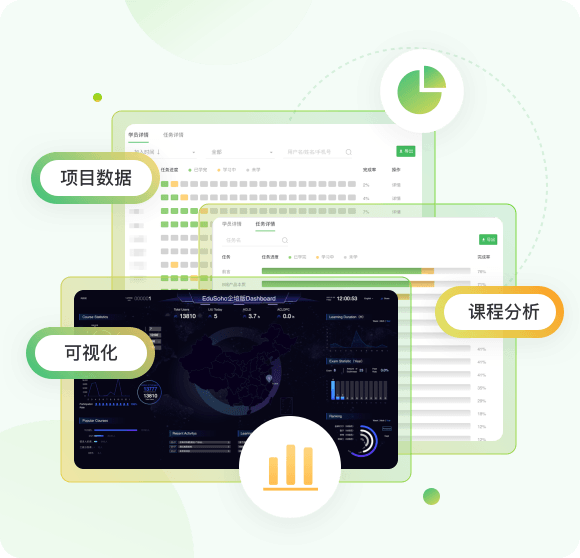 • 從培訓項目數據、員工學習檔案、平臺數據大屏,可視化、可導出的數據助力企業評估培訓效果,調整培訓計劃。